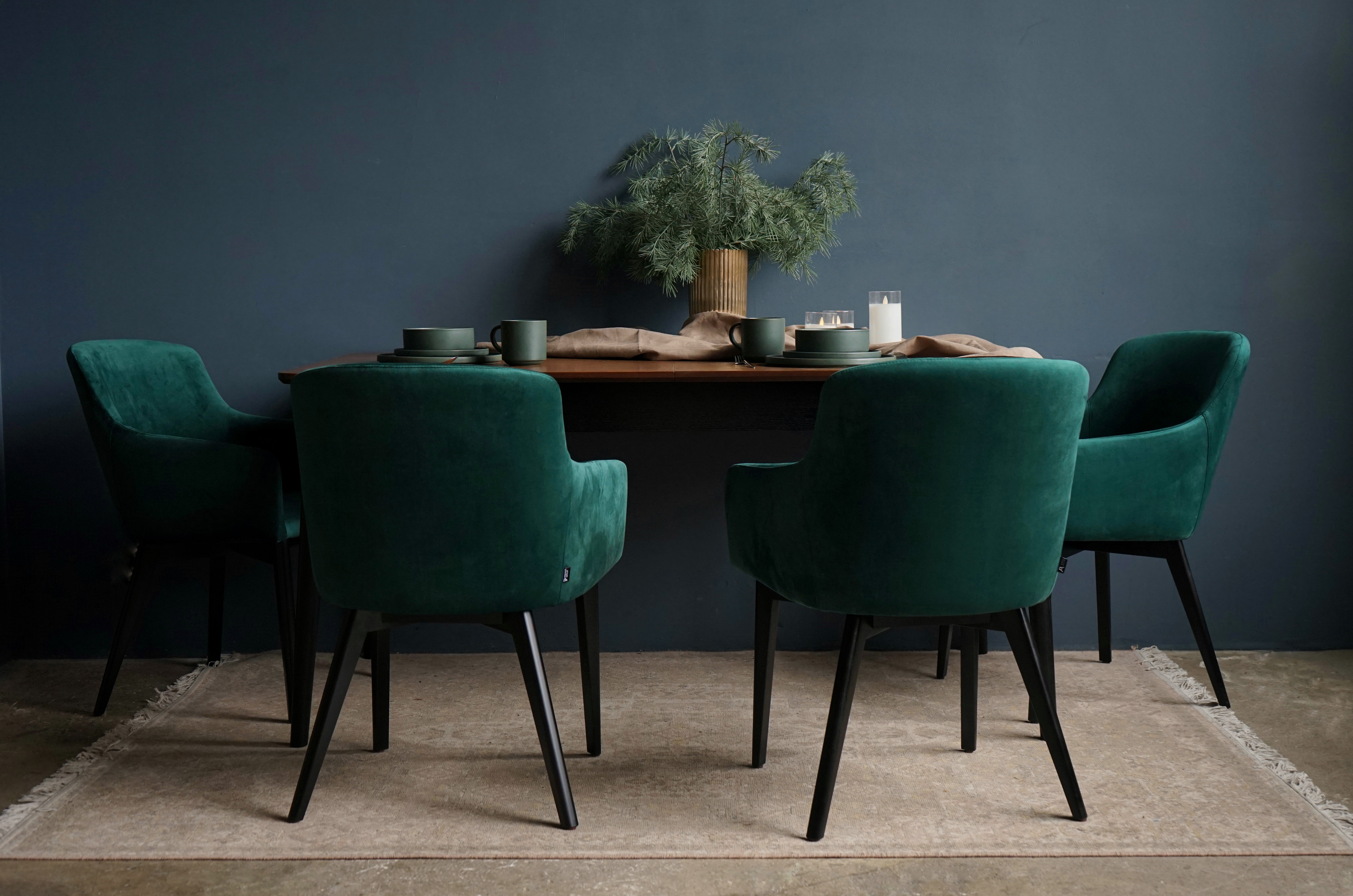 Нефрит/холодный изумруд — насыщенная группа для акцентных стен, панелей, штор, ковров и крупных мягких предметов. Смотрится благородно рядом с чёрным металлом, орехом, бронзой, тёмным камнем.
